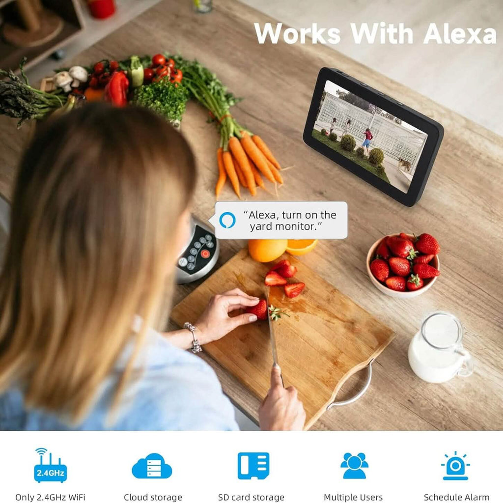 - With the built-in microphone and speaker, you can listen and talk to anyone through the app anytime remotely, or use Alexa to voice control the camera. Such as: communicate with the delivery man, warn burglars, or talk to your family and friends through the app. Share the device with up to 5 users simultaneously so that all the members can view the videos and protect together.