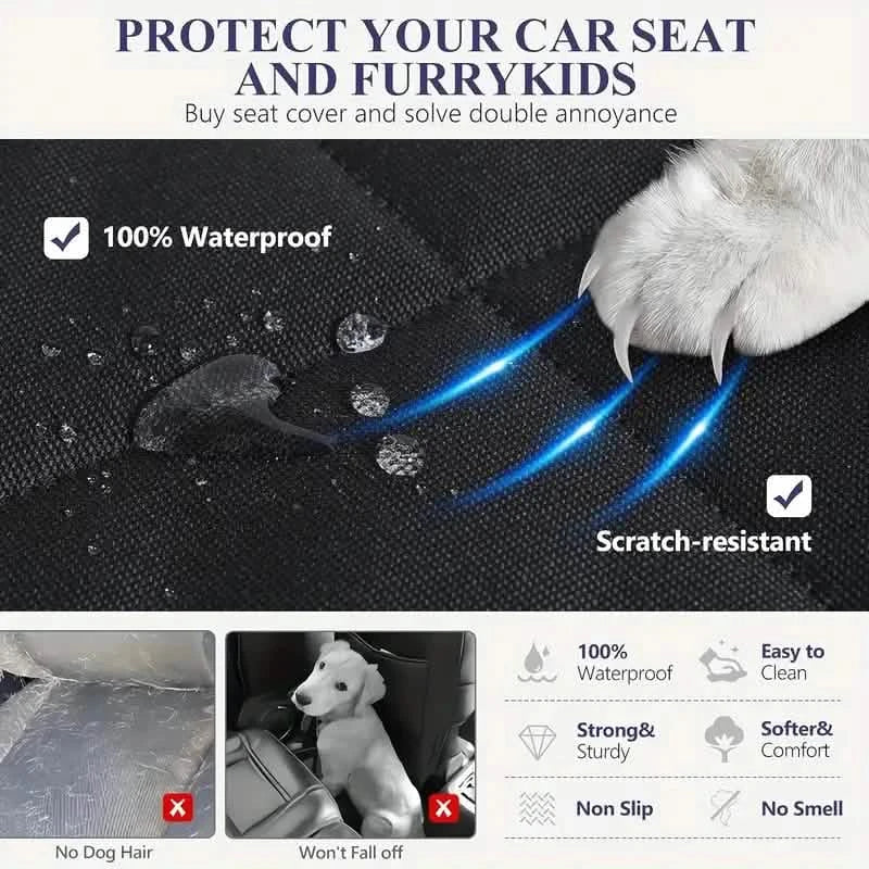 Waterproof Heavy-Duty Quilted Dog Seat Cover Hammock for Cars, Trucks, SUVs