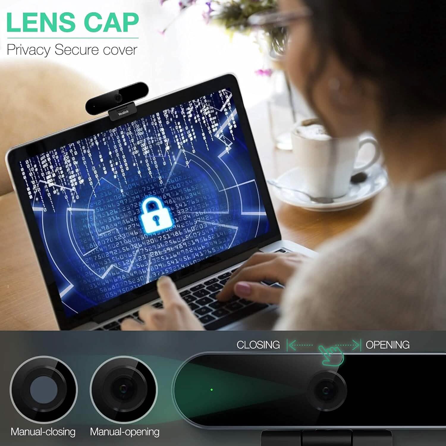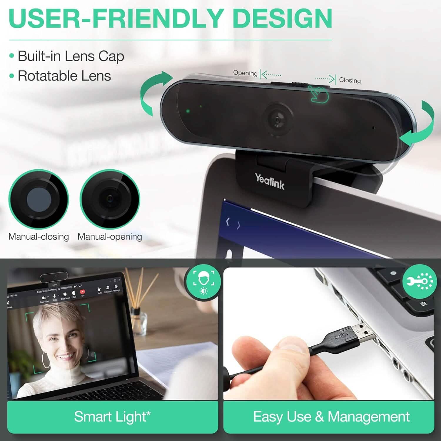 - The built-in lens cap is anti-lost and well protects the camera lens, conference security and personal privacy, which is reliable and safe for personal desktop use.